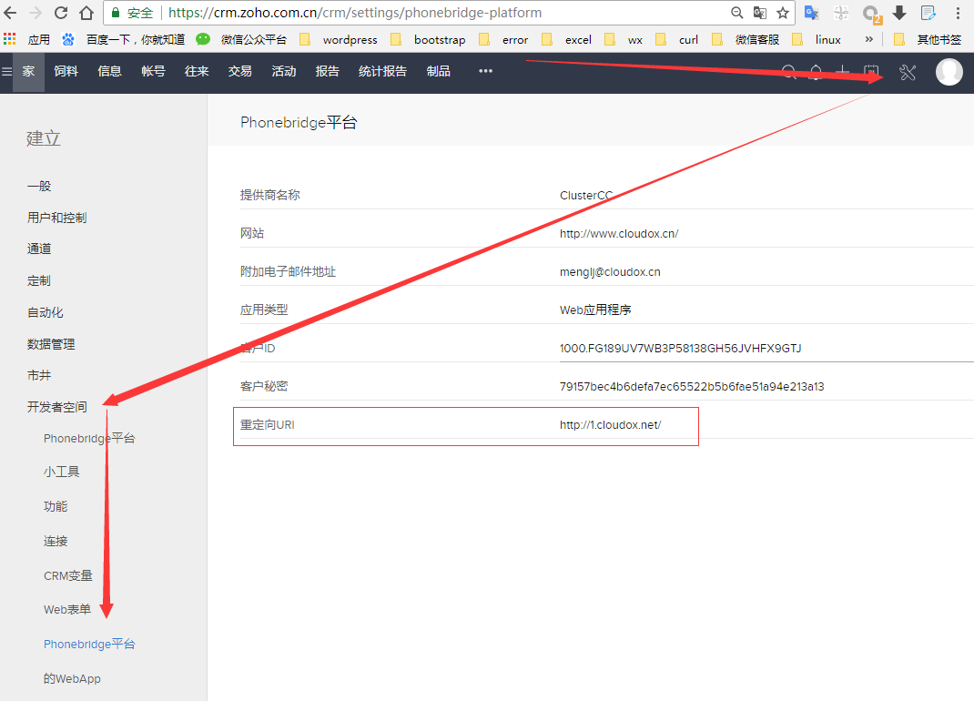 将clustercc与zoho_crm集成
