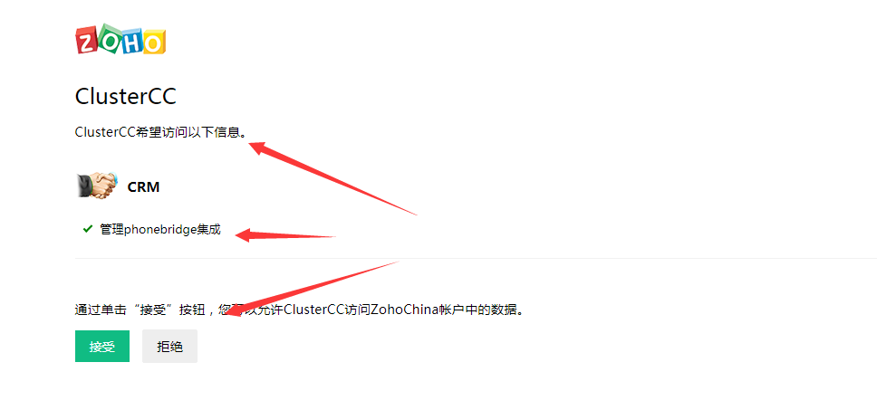 zohocrm集成clustercc